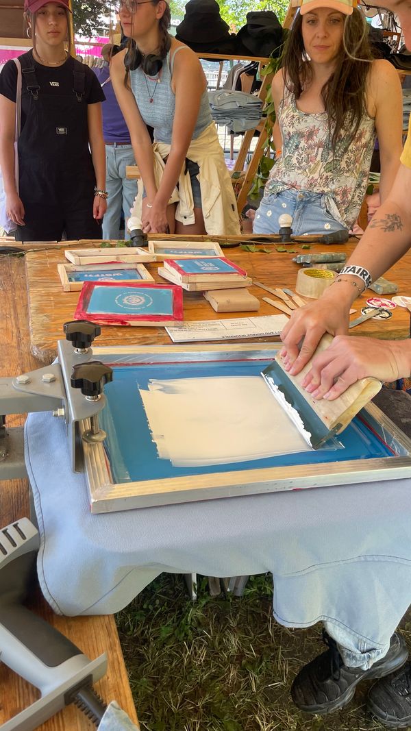 *Faire de la sérigraphie en direct est une démarche complètement engagée. Elle permet de créer des produits uniques sur place en proposant une animation, qui rend les participant “acteur” de la démarche écologique proposé. *